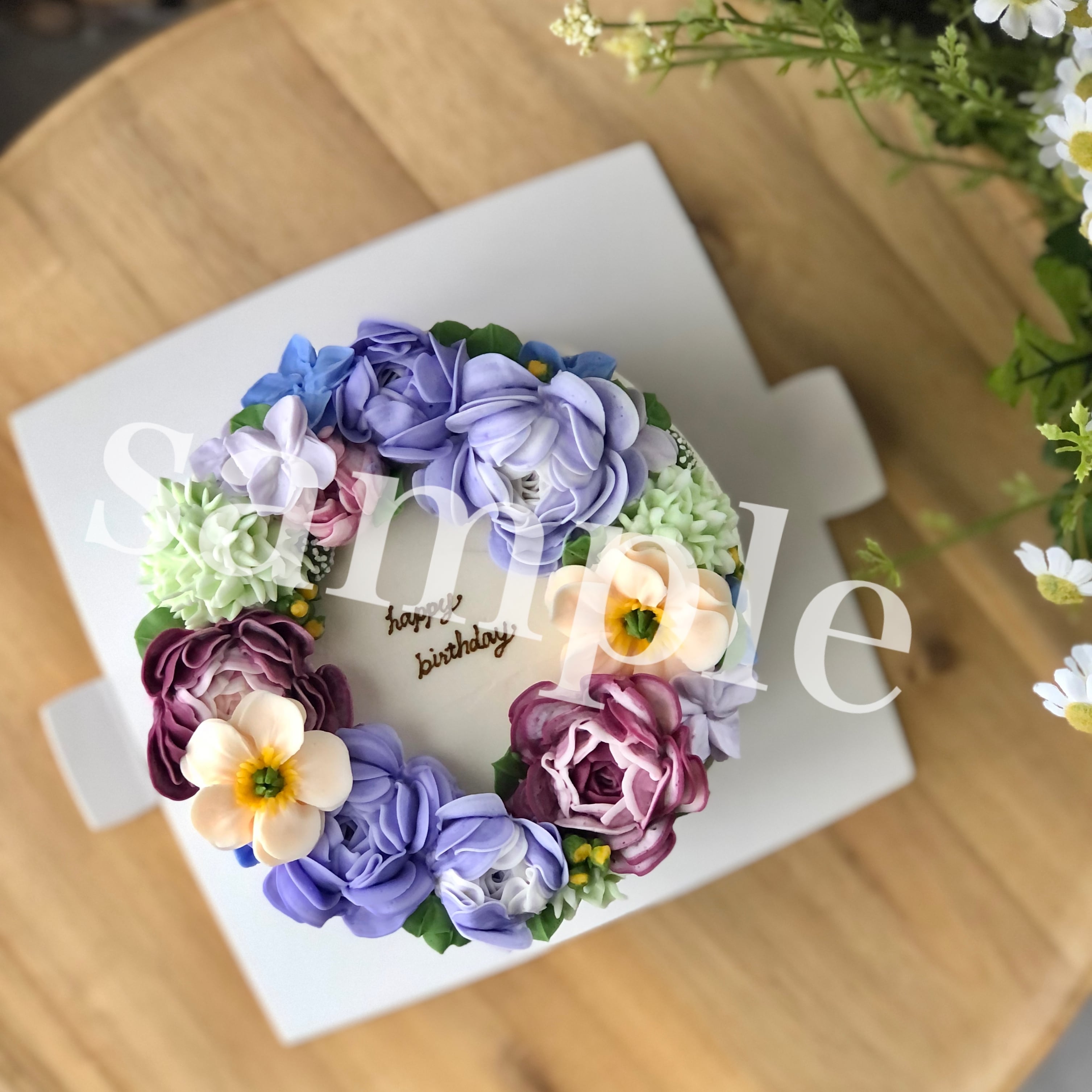 場合がございます(お花のデコレーション部分が少し側面の箱に付いてしまうど、、、)ひどく崩れているなどの場合にはすぐにご連絡下さい。早急に対応させて頂きます。冷凍保存できますので、お早目にご注文頂き、デコレーションの崩れなどがないか、確認されてからご利用日にご使用くださいますと幸いです。